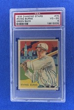 1935 diamond stars baseball card # 75 irving burns psa graded 4