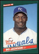 Like the 1986 Topps Traded Bo Jackson card, this one shows the Royals (and Raiders) phenom in a studio shot and …