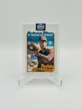 There is young Sandy in his chocolate San Diego Padres uniform with his catcher’s mitt extended, ball just lodging itself into his palm. Alomar appears to be jawing with whoever threw the horsehide, a slight smile on his face lending a light air to the whole scene.