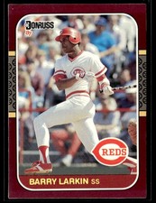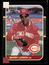 Larkin had that 1987 Donruss Rated Rookie card that caught fire when Larkin smashed his way through that summer of ’87, threatening all sorts of rookie records. Except that was Mark McGwire, not Larkin. Barry did have a good-looking Donruss rookie card that year, but it wasn’t “Rated” and it never climbed to the top of hobby hot lists.