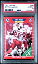 In the case of the smiling Barry Sanders rookie card, that means a sticker price of about $120 in PSA 9 condition.