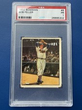 Less often seen for sale are hand-cut singles of Feller, either just the drawing or the complete drawing-plus-bio combination. A high-grade slabbed Feller with both pieces would likely bring a good deal more than the ungraded three-player specimens mentioned above.