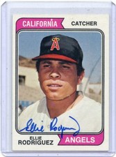 1974 TOPPS BASEBALL #405 ELLIE RODRIGUEZ, AUTOGRAPH, CALIFORNIA ANGELS 100418