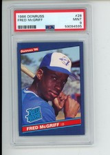 1986 Donruss Fred McGriff #28 Rated Rookie RC Blue Jays PSA 9 (595)