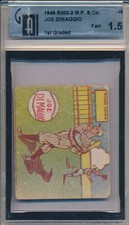 Oh, DiMaggio did make one appearance in a major post-War set, as card #1 in the 1948 Leaf issue. But when Bowman came calling that same year, DiMaggio passed.