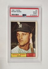 PSA GRADED 2 MC GOOD VINTAGE 1961 TOPPS #2 ROGER MARIS NEW YORK YANKEES HOF MLB
