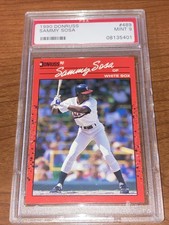 What follows, then, is a complete rundown of Sammy Sosa rookie cards, detailing all of his first major league issues, along with current values for copies in PSA 9 condition (based on recent selling prices).