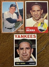 (3) YOGI BERRA BASEBALL CARDS 1962 TOPPS, 1963 TOPPS & 1964 TOPPS VG-EX+ READ